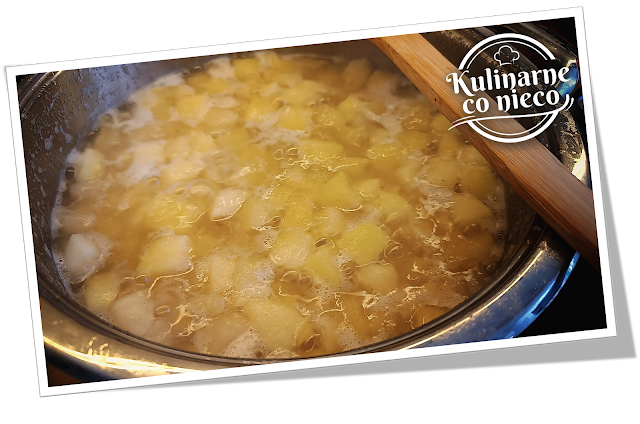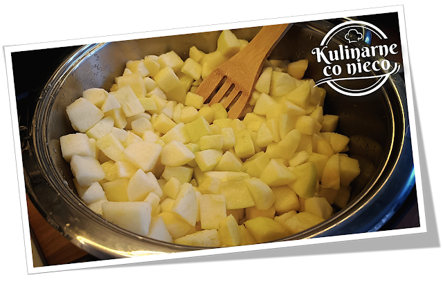 i dodać do garnka z jabłkami. Delikatnie wymieszać i zacząć podgrzewać.