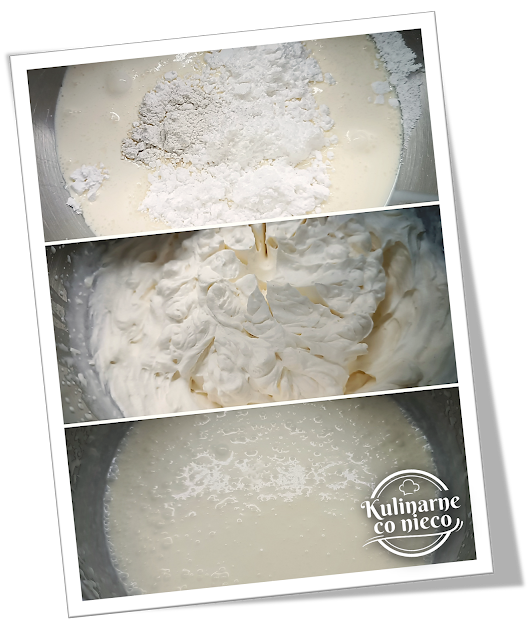 cukrem pudrem i cukrem waniliowym (lub aromatem). Rozpocząć ubijanie, najpierw na