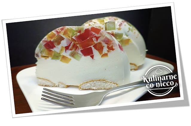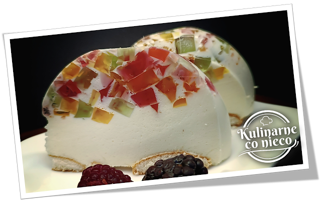 pełne smaku. To właśnie Śmietankowiec z kolorowymi kostkami galaretki, ciasto,