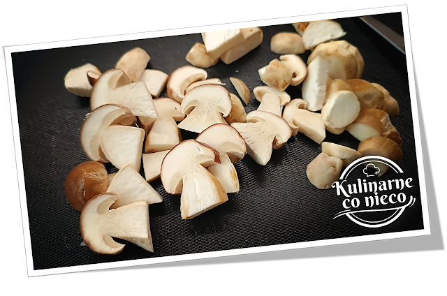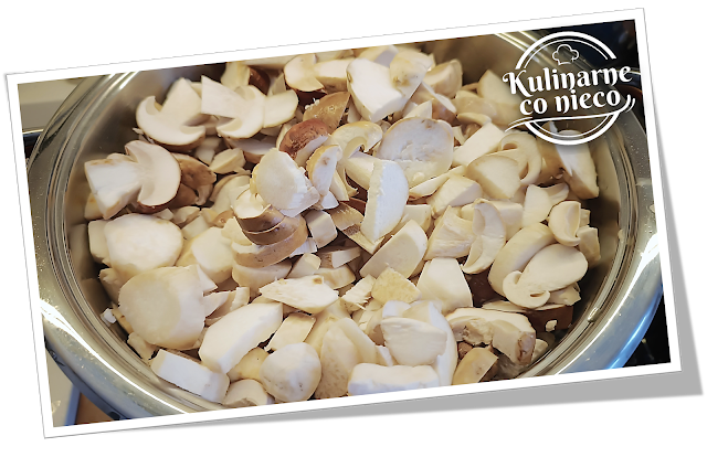 Większe grzyby pokroić na mniejsze kawałki, a mniejsze pozostawić w całości.