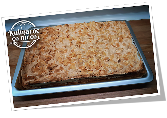 Wierzch posypany prażonymi płatkami migdałów dodaje chrupkości i wykwintności.