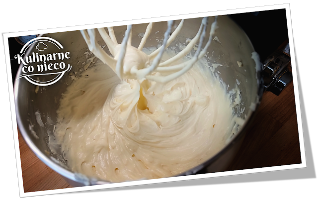 Gdy budyń już będzie zimny przełożyć go do misy miksera i zmiksować na najwyższych obrotach aż powstanie gładka masa. Następnie dodać serek Masarpone i całość miksować jeszcze przez kilka minut aż składniki dokładnie się połączą a masa zrobi się aksamitna i jednolita.