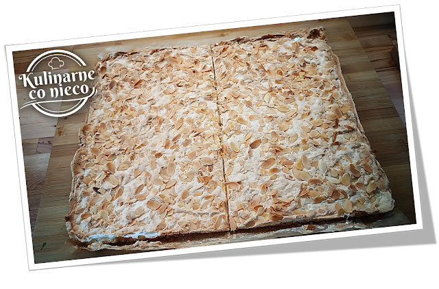 Następnie bezę posypać obficie płatkami migdałowymi.