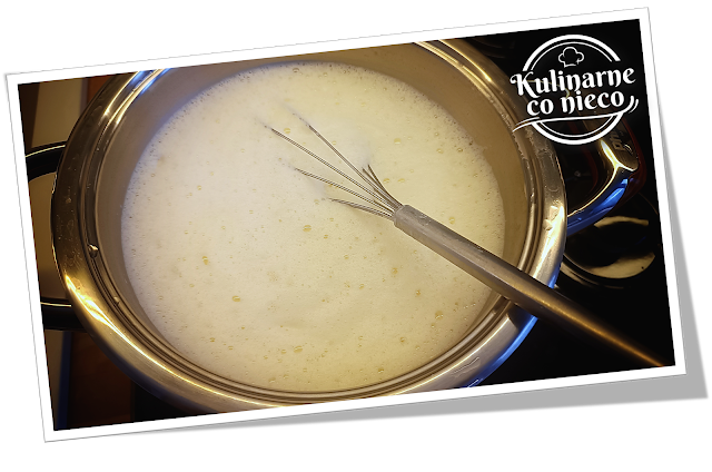 strużką (aby uniknąć ścięć jajek) wlewać wrzące mleko do masy. Całość miksować