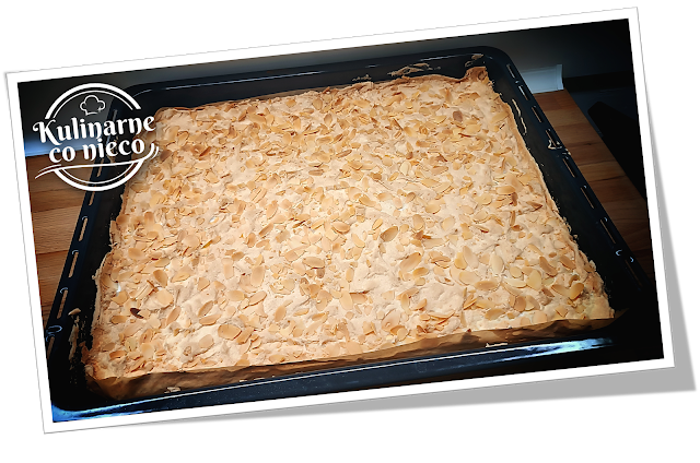 Wierzch posypany prażonymi płatkami migdałów dodaje chrupkości i wykwintności.