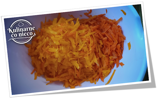 Dynię i marchewkę obrać i zetrzeć na tarce o grubych oczkach.