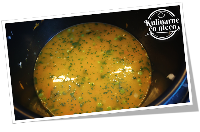 Całość zalać bulionem, doprawić solą oraz pieprzem do smaku i wymieszać.
