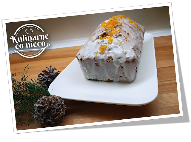 kilka kawałków kandyzowanej skórki pomarańczowej, aby podkreślić smak ciasta.