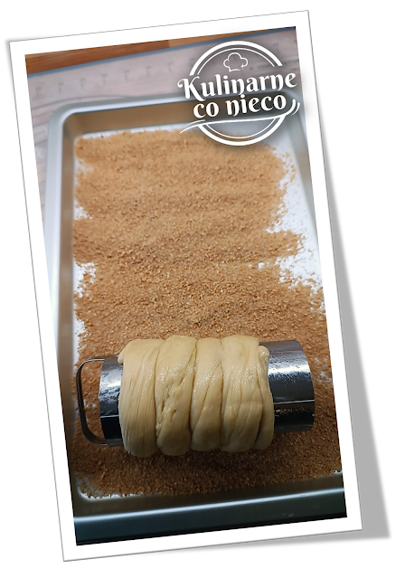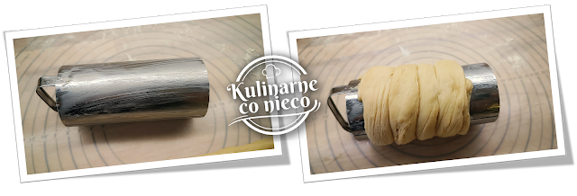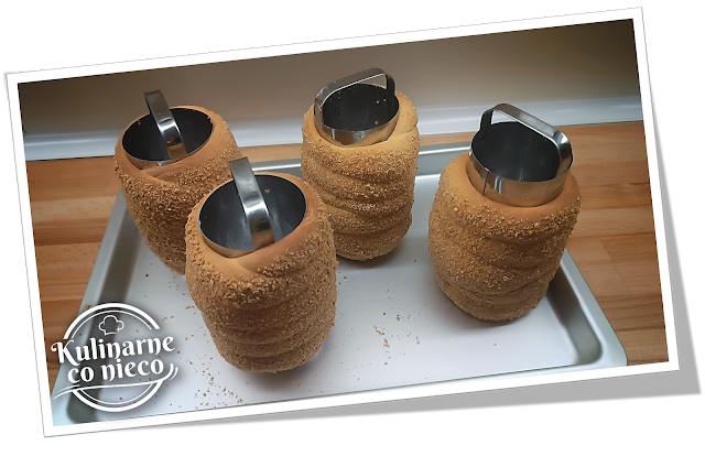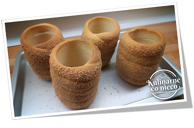 Po upieczeniu Kürtőskalács delikatnie zdjąć z foremki,