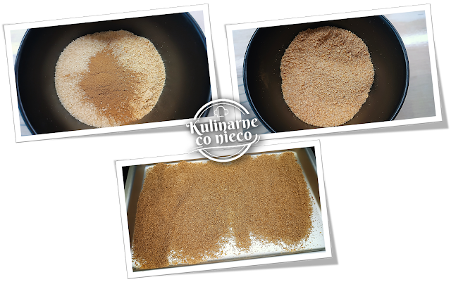 trzcinowy, cynamon i zmielone orzechy. Mieszankę wysypać na płaską tackę i równomiernie