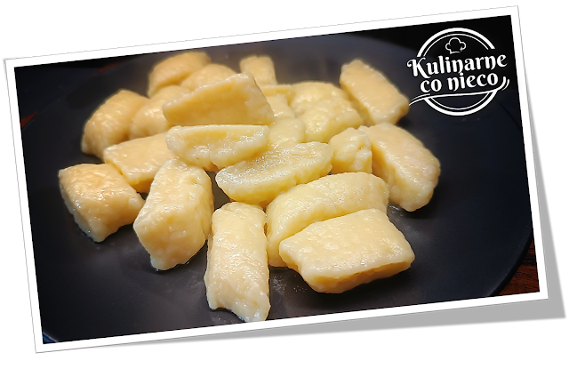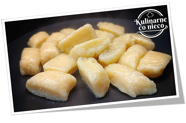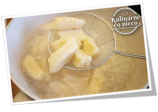 Ugotowane kopytka wyjąć łyżką cedzakową i odłożyć na