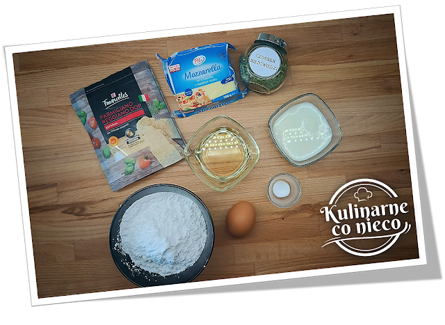 mleko, olej, jajko, sól, mąkę z tapioki, 100 g startego parmezanu i 50 g