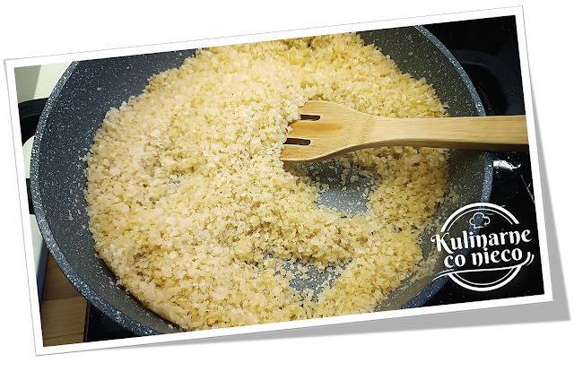 Dodać ciasto i prażyć na średnim ogniu, mieszając, aż stanie się chrupiące i