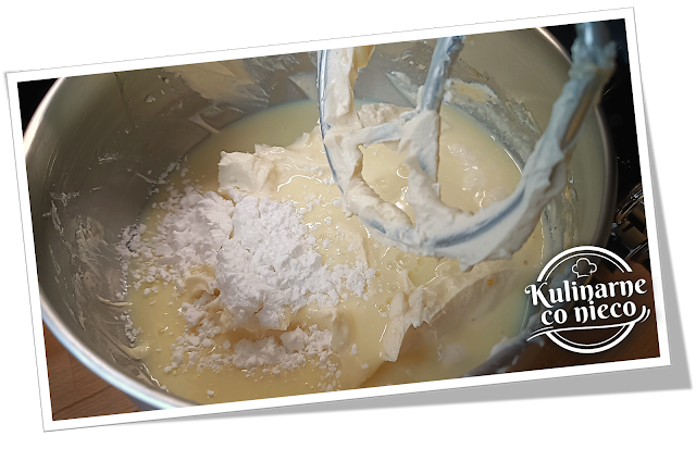 stopniowo dodając cukier puder. Ubitą pianę delikatnie wmieszać do masy serowej