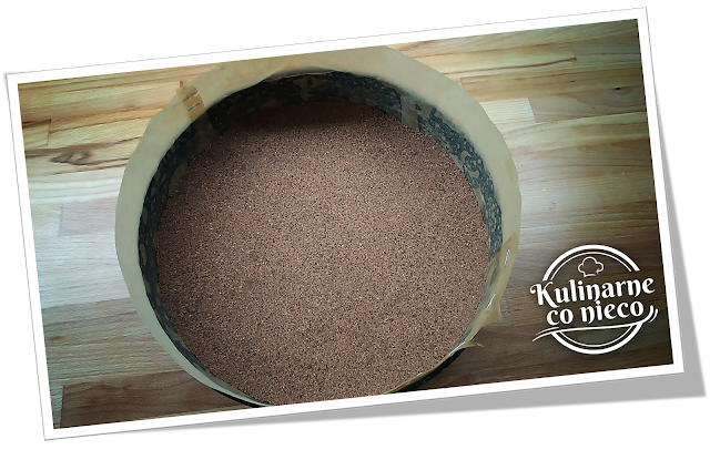 spód, jak i boki tak, aby papier na bokach wystawał około 3 cm ponad rant formy. Sernik podczas pieczenia lekko wyrośnie, papier utrzyma go w formie i zachowa jego kształt.
