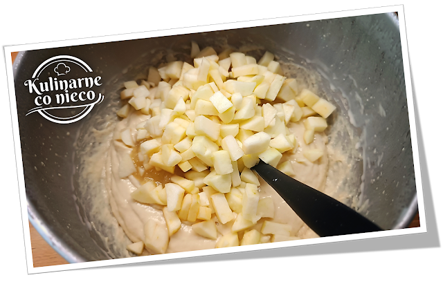 Jabłka pokrojone w kostkę ukrywają się w cieście jak małe skarby, a podczas