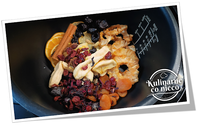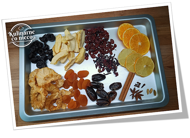 ananasy, jabłka, daktyle i żurawinę), przyprawy (cynamon, goździki, anyż,