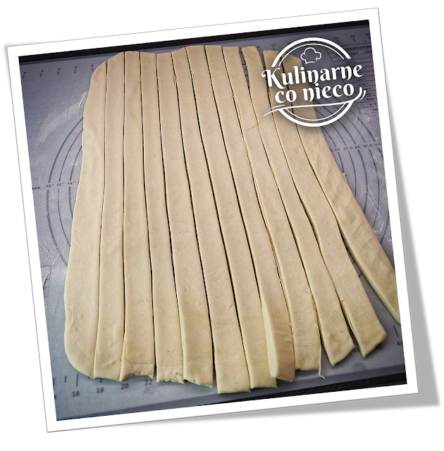 Następnie z ciasta wyciąć równej długości paski o