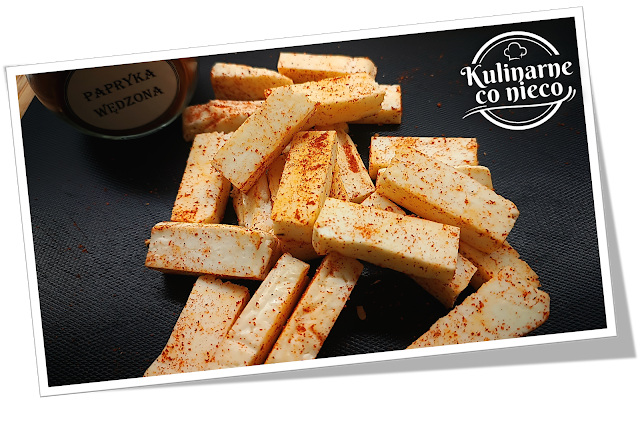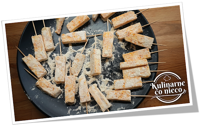Każdy kawałek oprószyć wędzoną papryką i obtoczyć w mące.