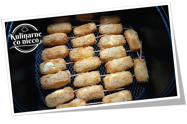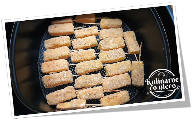 Panierowane kawałki sera ułożyć w koszu AirFryera pozostawiając między nimi małe odstępy.