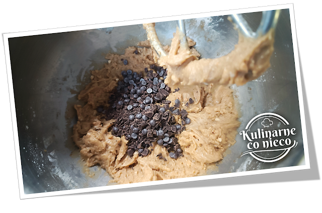 Dodać posiekaną czekoladę lub kropelki czekoladowe i ponownie
