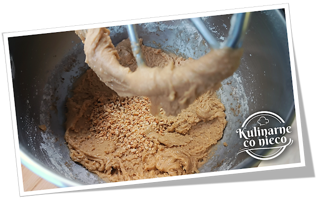Wsypać posiekane orzeszki, wymieszać.