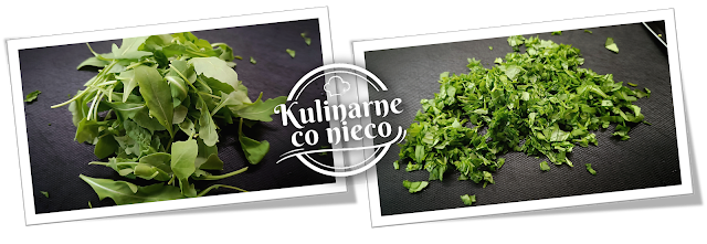 Szpinak i rukolę drobno posiekać.