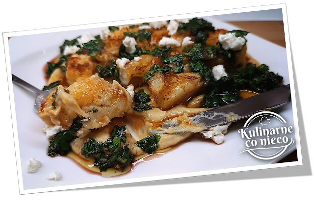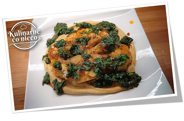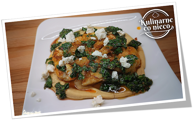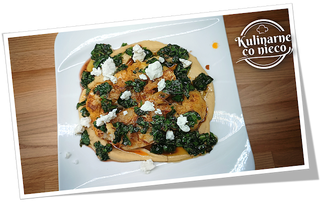 aksamitnym hummusie i skropiony aromatycznym sosem oraz oprószony fetą?