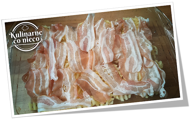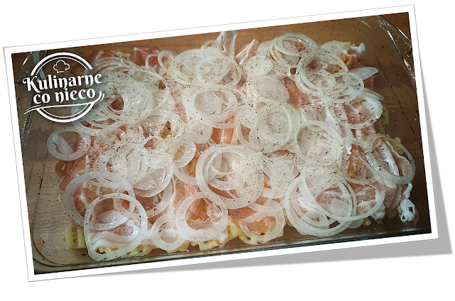 plastry, cebulę w półplasterki, a boczek ułożyć warstwami, tworząc apetyczną