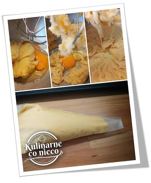 Gotową masę przełożyć ciasto do rękawa cukierniczego.