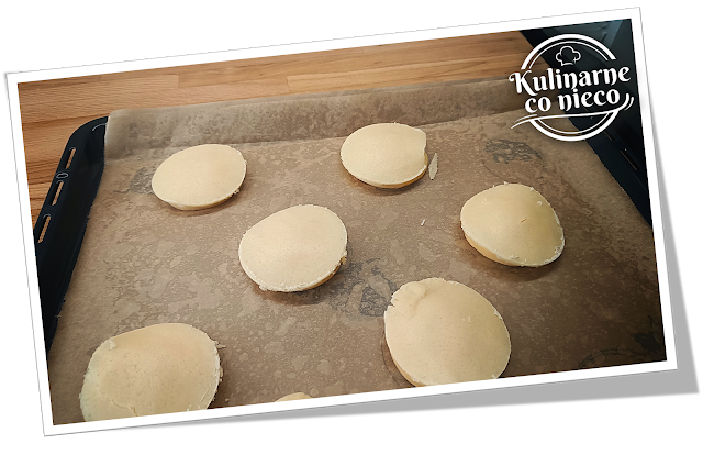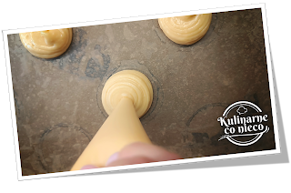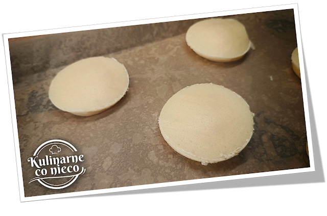 niego krążki o średnicy nieco większej niż ptysie (o średnicy ok 6 cm).