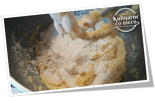 Stopniowo dodawać mąkę do masy maślanej, mieszając