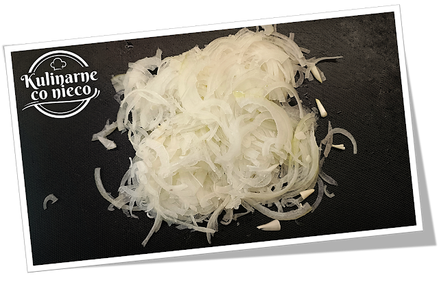 Na rozgrzanym tłuszczu zeszklić piórka cebuli na lekko