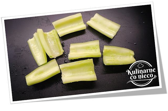 Zielonego ogórka obrać, usunąć z niego gniazdo nasienne