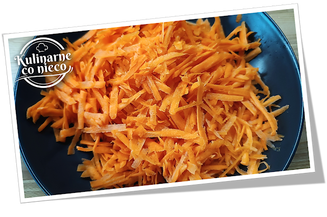 Marchewki obrać i zetrzeć na tarce o grubych oczkach.
