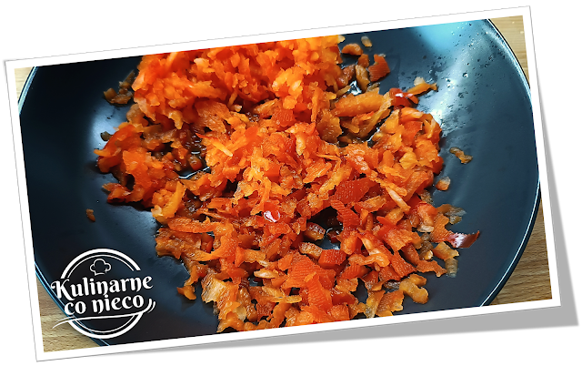 Dodać startą marchewkę, wymieszać i smażyć 4 min aż