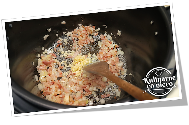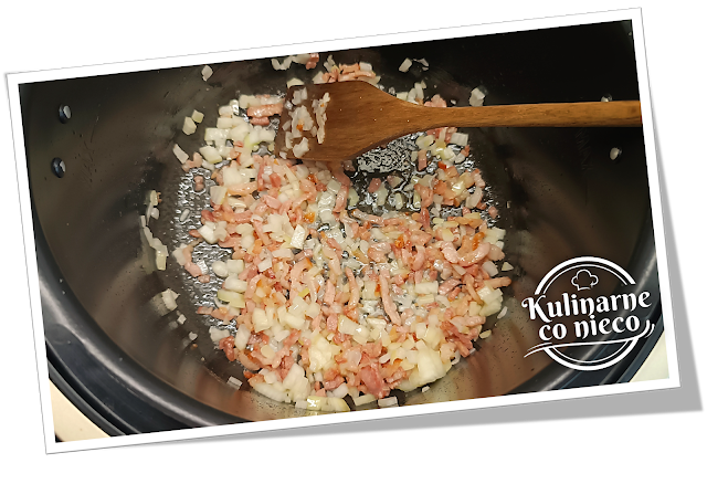 boczek i wytopić z niego tłuszcz. Smażyć do momentu, aż zacznie się rumienić i