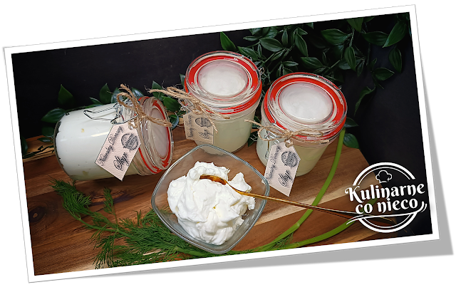 kilka łyżek gotowego Skyru jako startera). Po podgrzaniu mleka, dodaniu