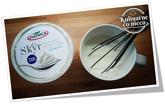 W kubku wymieszać 3 łyżki sklepowego Skyru z 1 chochlą