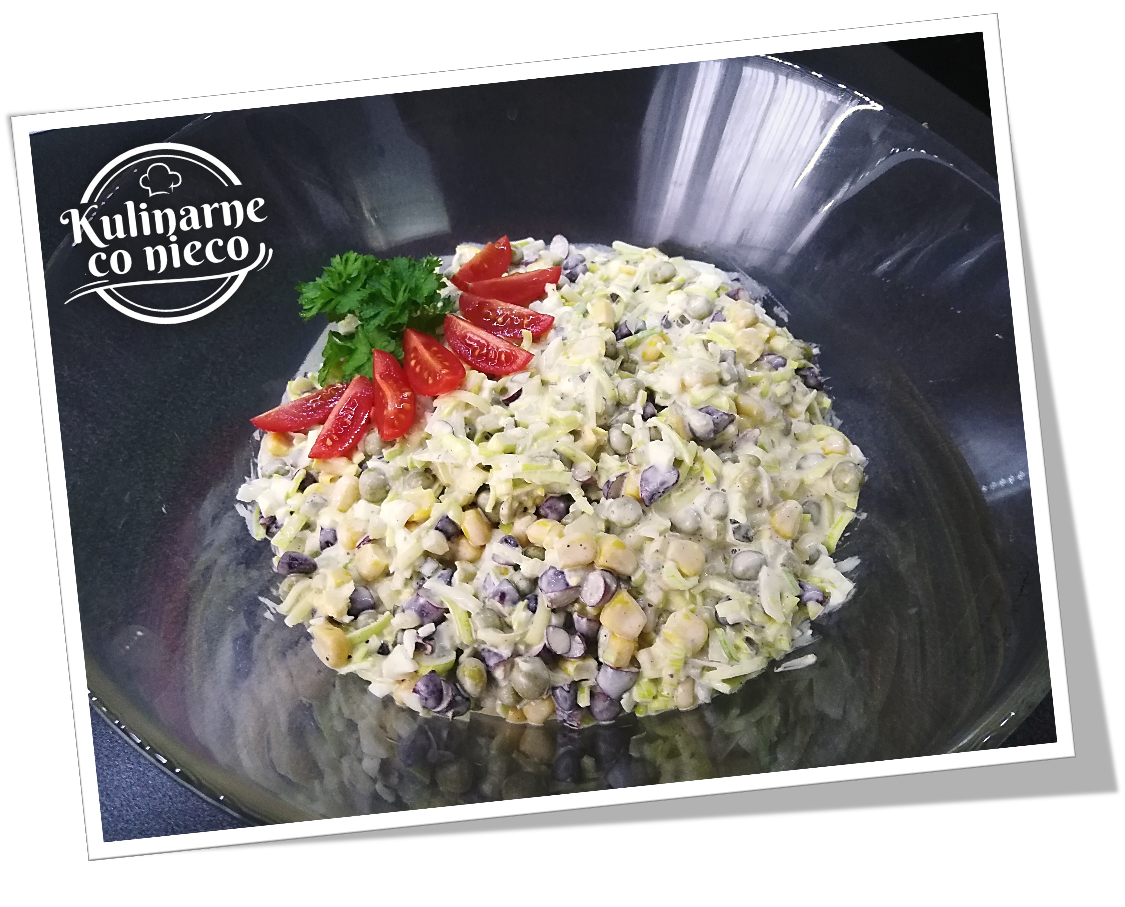 Kukurydzę, groszek i czerwoną fasolę bardzo dokładnie odsączyć na sitku. Warto poświęcić chwilę i dobrze pozbyć się zalewy – dzięki temu sałatka nie będzie wodnista i zachowa idealną konsystencję. Fasolę można zostawić w całości, ale jeśli ma się chwilę czasu, warto ją lekko posiekać – sałatka będzie wtedy bardziej spójna i wygodniejsza do jedzenia. Wszystkie warzywa dodać do miski z porem.