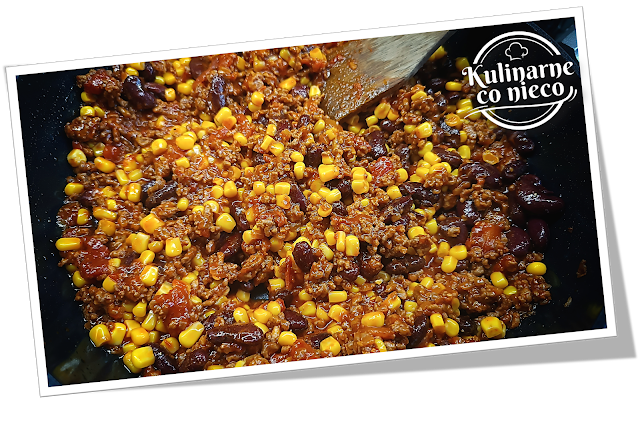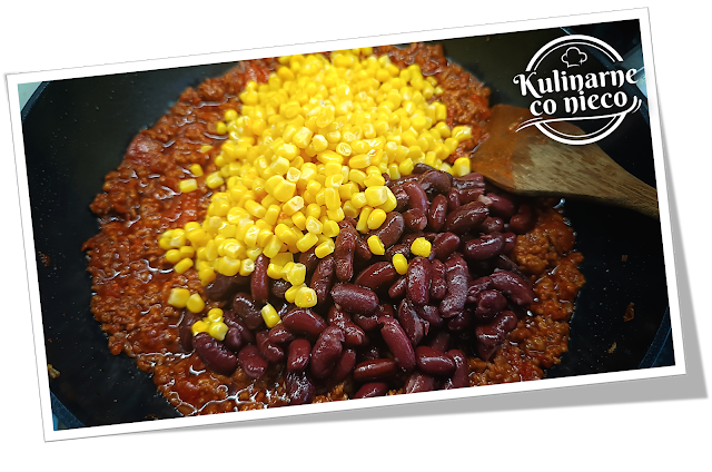 mielonej wołowiny, czerwonej fasoli, kukurydzy, pomidorów i przypraw,