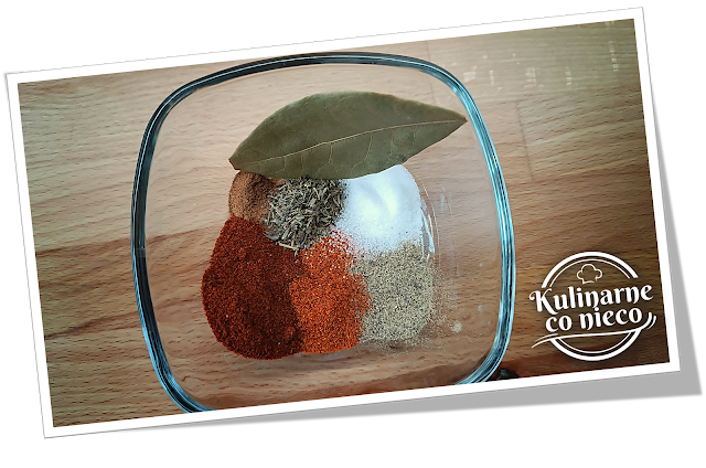 paprykę, cynamon, liść laurowy i tymianek. Wszystko wymieszać.