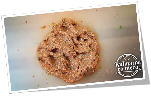 zmielić i umieścić w misce. Dodać pastę cebulowo – czosnkową, wszystkie