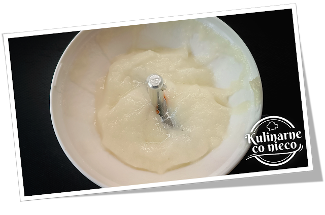 i czosnek obrać i zmiksować w malakserze lub mikserem na gładką pastę.
