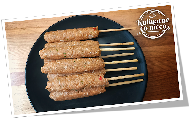 olejem, aby mięso nie przyklejało się do rąk. Kofty nadziać na patyczki do