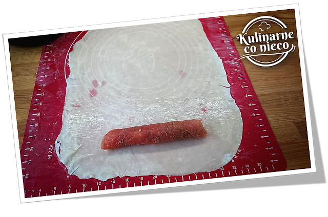 folią spożywczą lub arkuszem papieru do pieczenia. Na koniec całość również