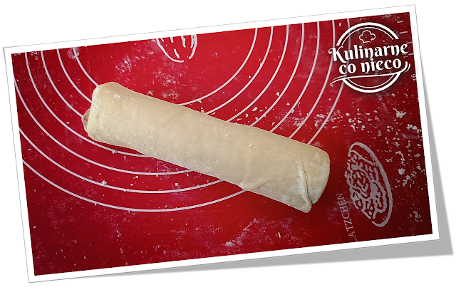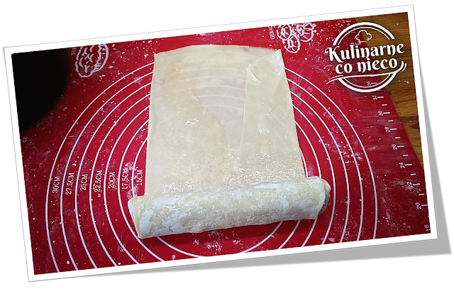 płaty układać jeden na drugim, każdorazowo oprószając je skrobią. Aby zapobiec