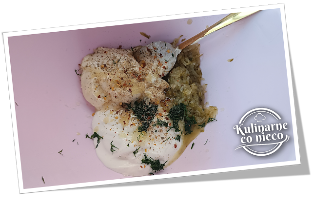 dopełnia chłodny, aksamitny sos na bazie kwaśnej śmietany i majonezu,