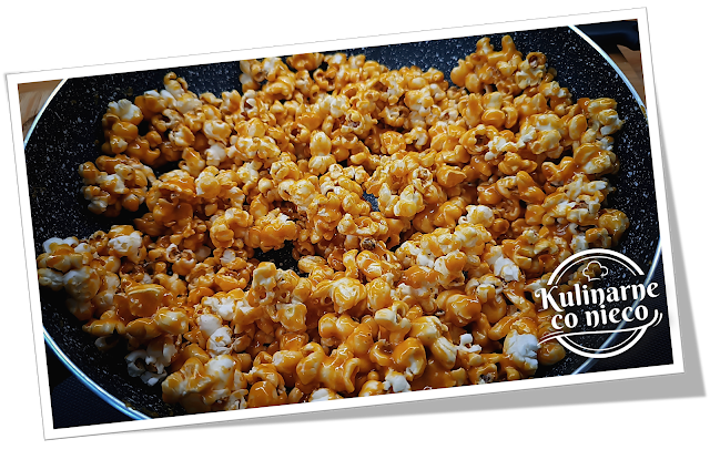 zastygać. Chodzi o to, aby każde ziarno popcornu było otulone karmelową