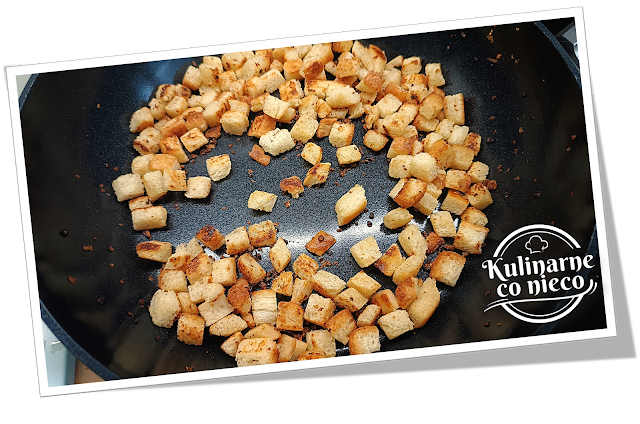 przez około 5 minut, często mieszając, aż grzanki będą złociste i chrupiące z